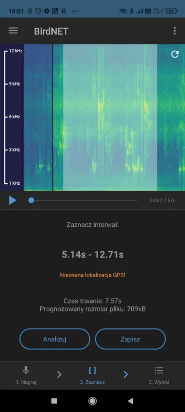 Wybierzcie fragment nagrania do analizy i kliknijcie „Analizuj”.